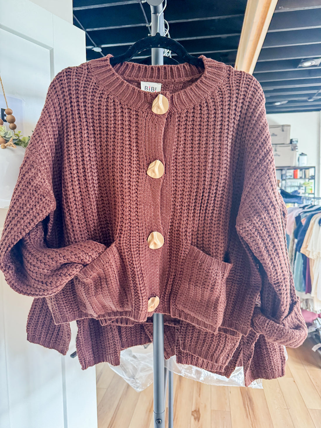 Plus Round Neck Button Down Long Sleeve Cardigan