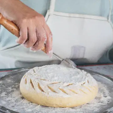 1. Long handle bread Scoring lame for dough slashing with 5 blades and faux leather protective Cover 2. Size : 6" handle , overall length 9" 3. Stainless steel head with Beach wood handle, extra long 6" handle for your better grip ( comparing to the most of 4" handle in the market)