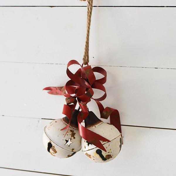 Brighten your home with this charming Double Tin Round Bell featuring a festive red bow. At 8" x 3.5" x 8", its classic design brings vintage holiday warmth to doorways and mantels. A cheerful accent that spreads seasonal joy.