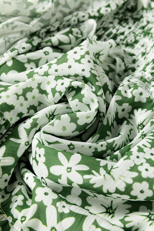 Sweet, soft, and made to twirl. This floral mini dress features a square neckline, a flattering shirred waist, and tiered ruffle layers for extra movement. Light, breezy, and effortlessly feminine.