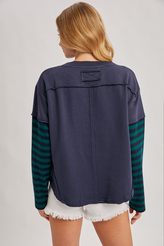 Stripe Contrast Long Sleeve Loose Fit Pullover