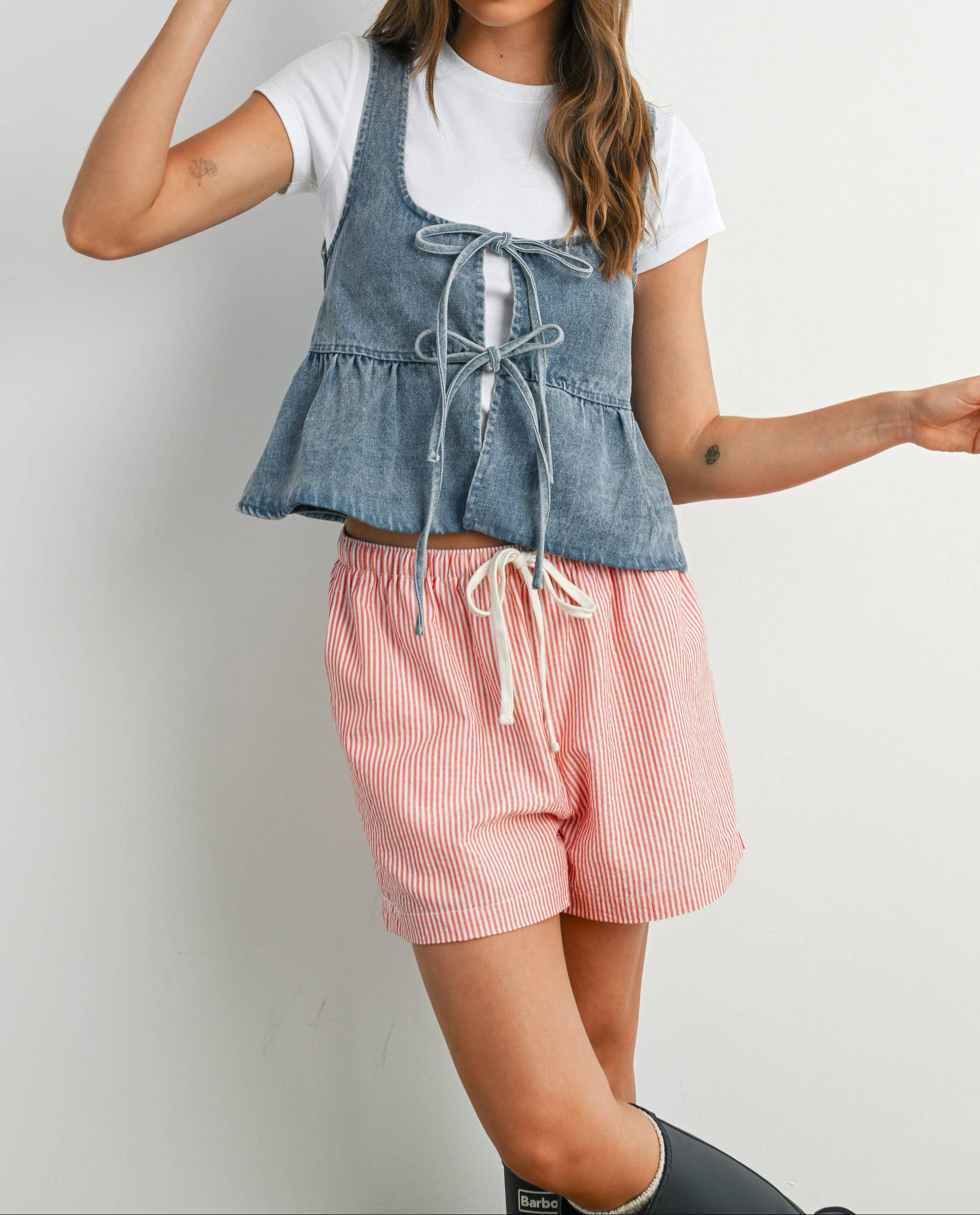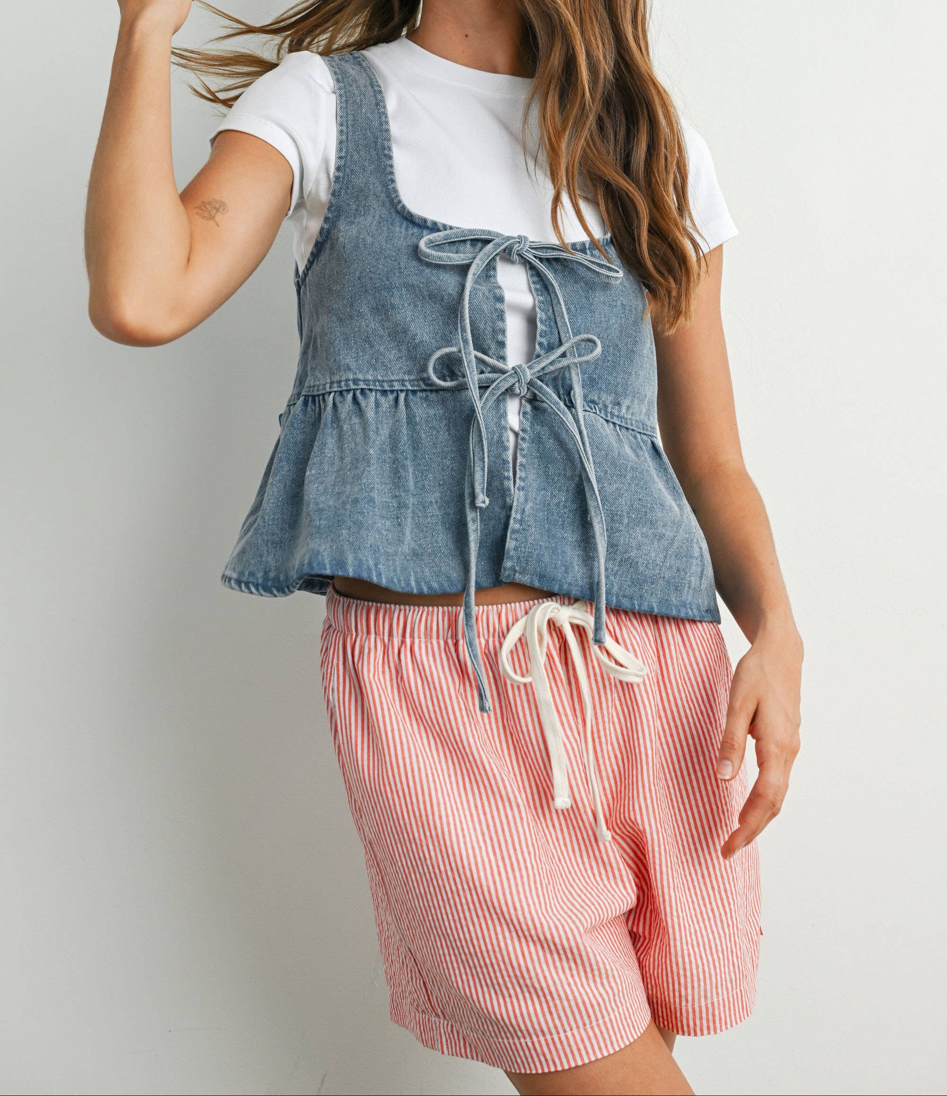 This charming ruffled hem tie tank top brings a touch of feminine flair to your everyday wardrobe. Crafted from 100% cotton for breathable, all-day comfort, it features a flattering tie front detail and playful ruffled hem that adds movement and style. The soft, natural fabric feels wonderful against your skin while the versatile design pairs effortlessly with jeans, shorts, or skirts for a look that's both casual and put-together.