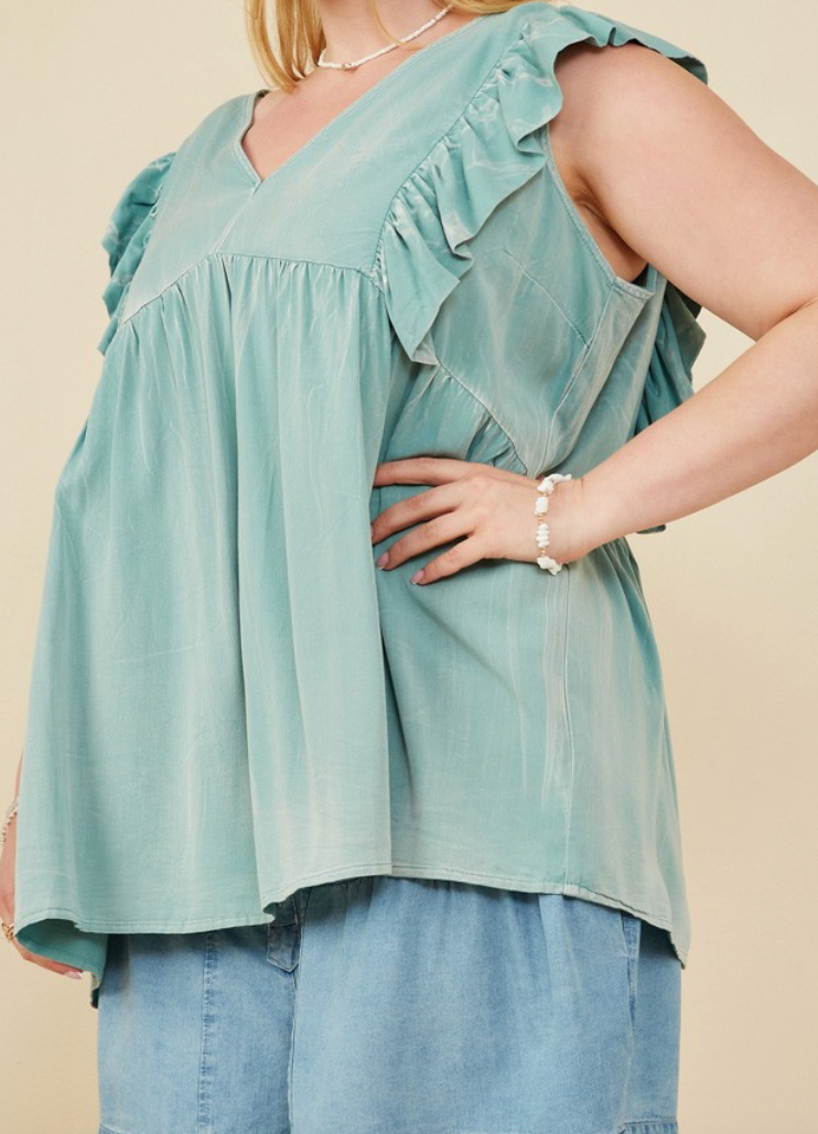 Ruffled V Neck Tencel Tank-2XL