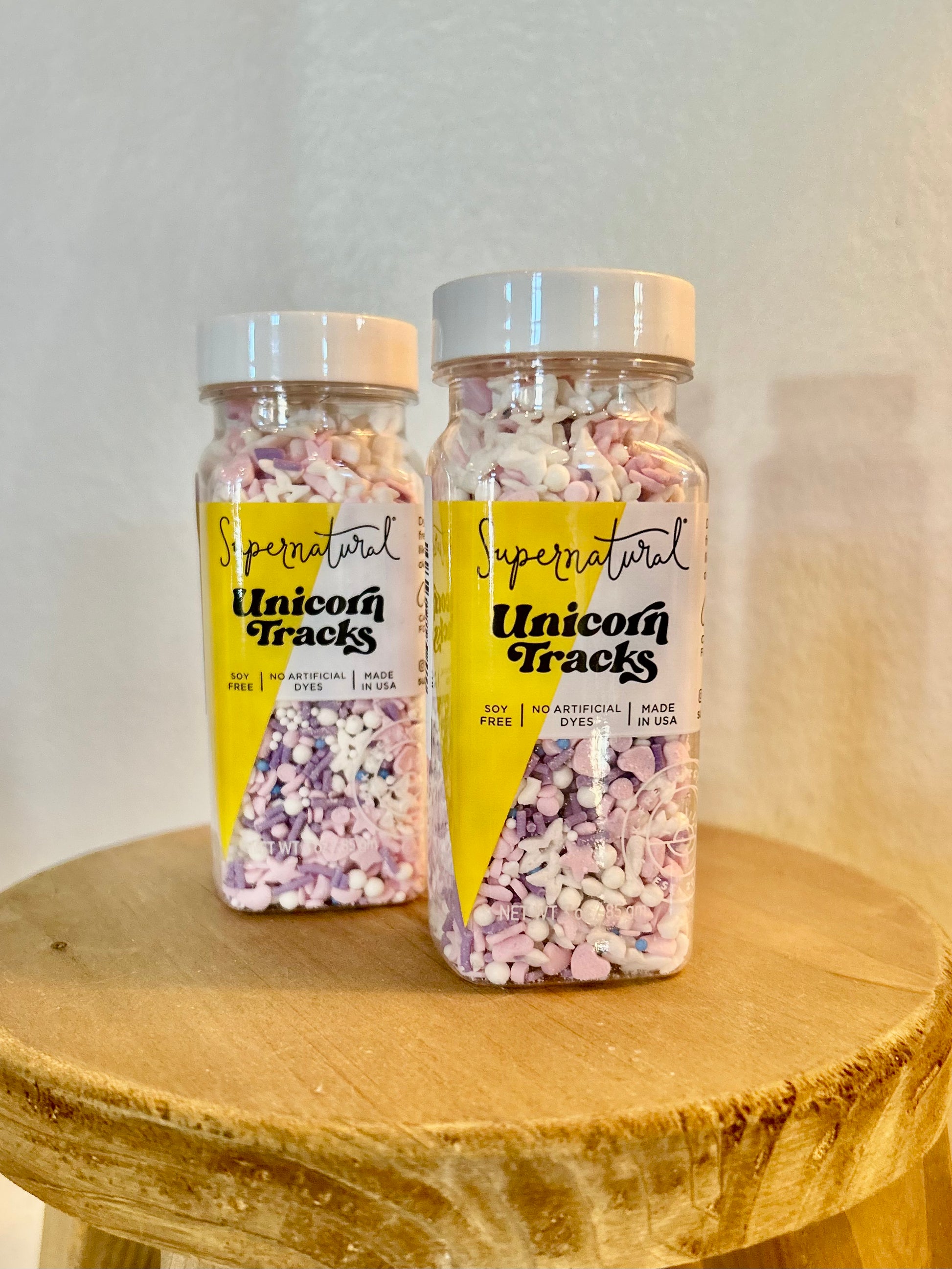 Add a touch of magic to your treats with these Supernatural Unicorn Tracks Sprinkles! These pastel-hued, whimsical sprinkles are perfect for topping cupcakes, cookies, cakes, or ice cream with a dreamy, colorful flair. Made with no artificial dyes or preservatives, soy free and crafted with clean, natural ingredients.